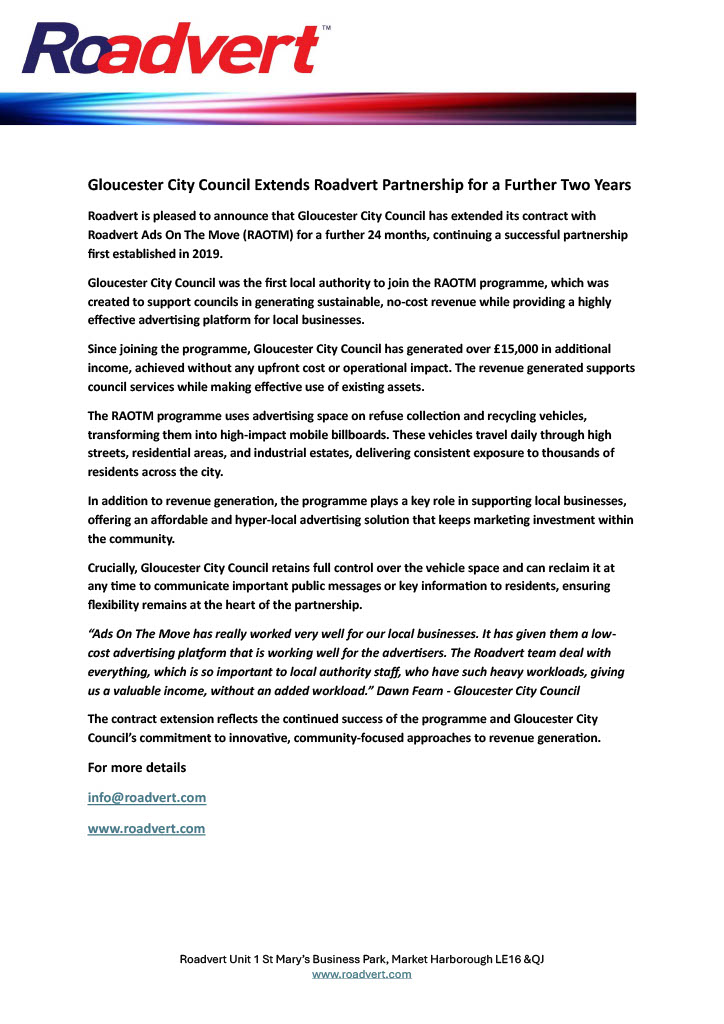 Gloucester City Council Extends Roadvert Partnership for a Further Two Years